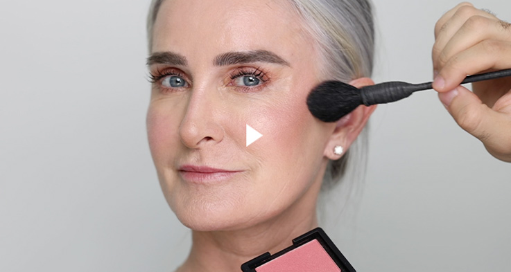 لإضفاء المزيد من الأبعاد، يُطبّق لون برّاق على تفاحتَي الخدين ويُطبّق لون غير لامع على تجويف الخدّين.